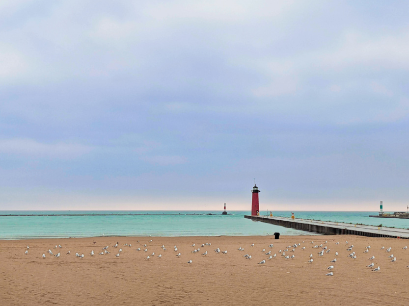 North Pier Lighthouse in the Rain Kenosha Wisconsin 4