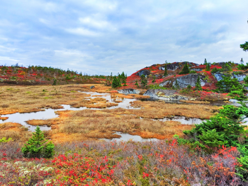 Fall Colours wild blueberry bushes Duncans Cove Preservation Area Nova Scotia 3