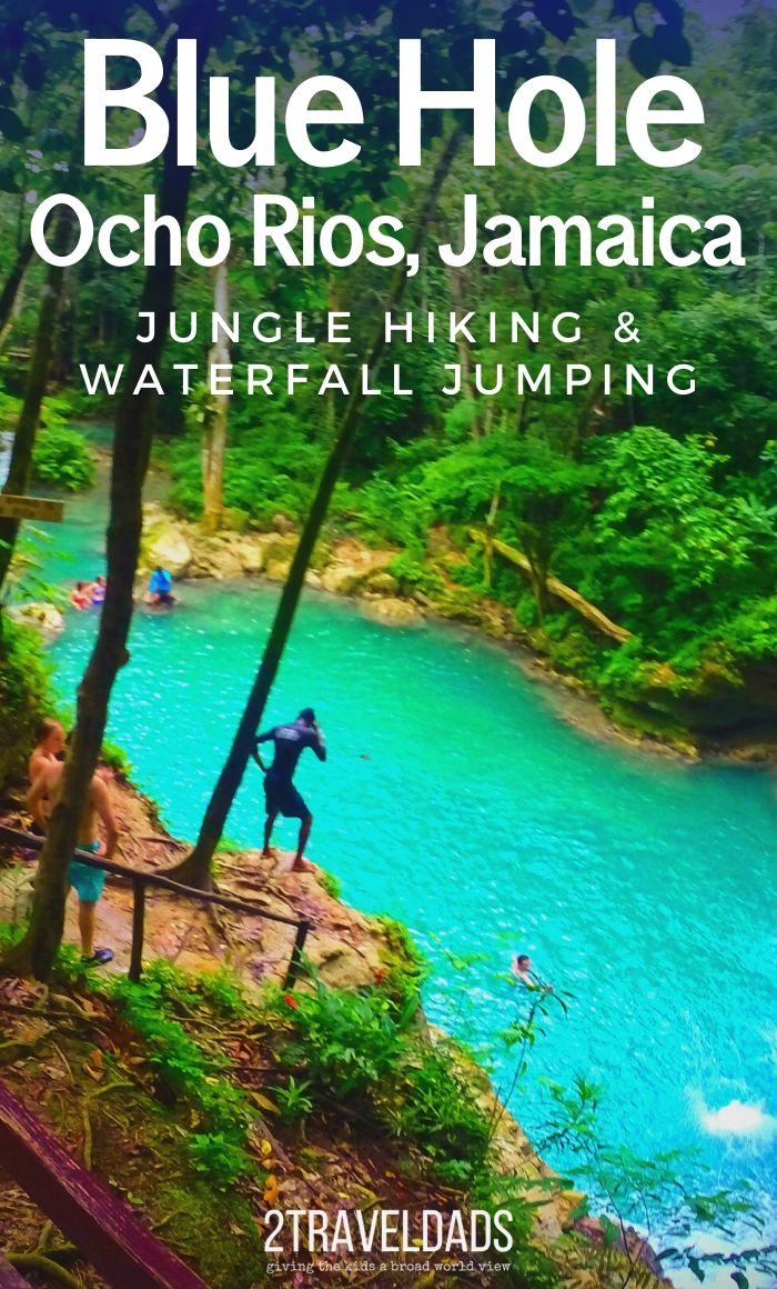 The Blue Hole in Ocho Rios, Jamaica is a great day trip or cruise excursion into the Jamaican jungle. Climbing and jumping off waterfalls, hiking along tropical rivers and swimming in turquoise jungle pools are an epic island vacation adventure. #Caribbean #cruise #hiking #jamaica