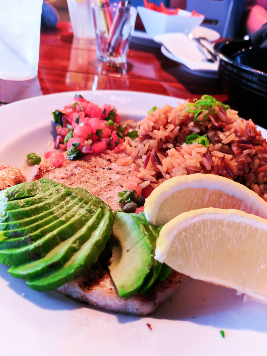 Grilled salmon at Moonstone Beach Bar and Grill Cambria Central Coast 1
