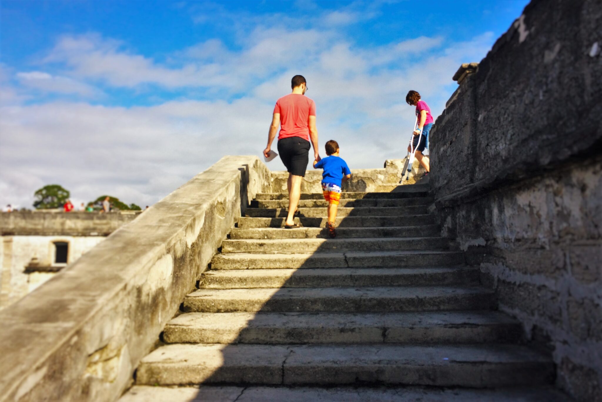 Chris Taylor and LittleMan climbing stairs at Castillo de San Marcos St Augustine 1