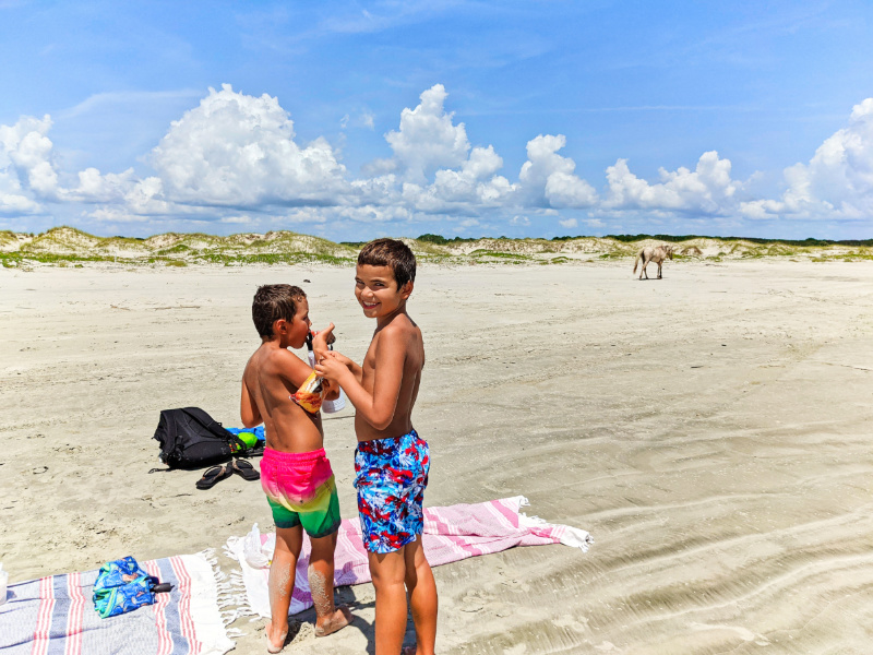 Taylor Family and Wild Horse on Beach at Cumberland Island National Seashore Coastal Georgia 1
