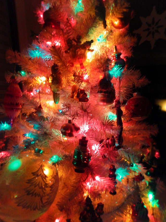 Confession: we also own a fake Christmas tree. When we lived in Orange County, California, it wasn’t sustainable or affordable to go to a tree lot to purchase a Christmas tree. We didn’t live close enough to any tree farms, so buying a tree at a lot was going to be expensive and we would be getting a not-so-fresh tree, so we bought a fake tree. And if you’re going to have a fake tree, you might as well have a blatantly fake one: a sparkly white one. We actually love our fake tree and use it randomly.