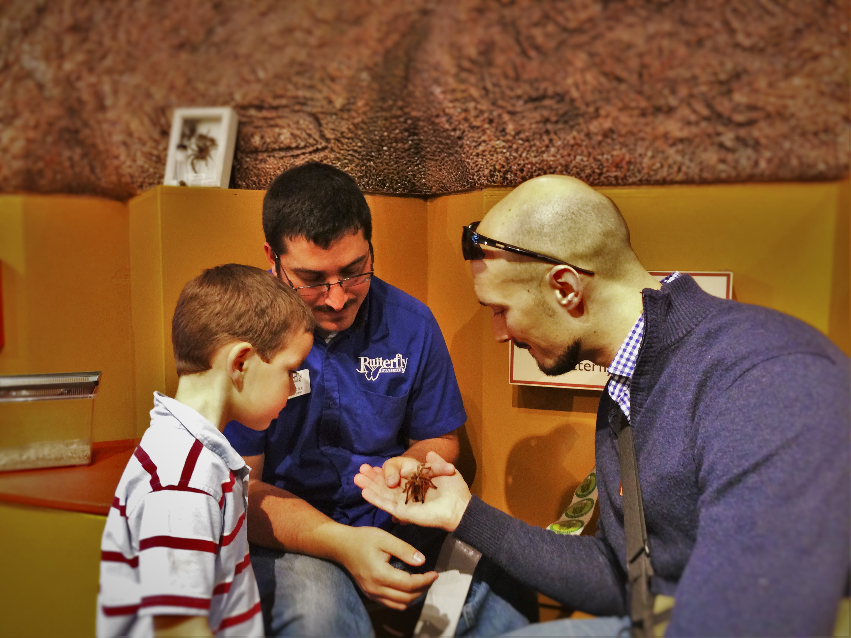 Rob Taylor holding Rosie the Chilean Red Hair Tarantula at the Butterfly Pavilion Denver Colorado 2You know what else was pretty darn “tough guy” about the Butterfly Pavilion?  Holding a tarantula.  That’s right.  Even though the kids didn’t want to hold her (and neither did Chris) I totally held and enjoyed the experience of meeting Rosie the Chilean Rose Haired Tarantula.  She was soft, gental and a little curious.  It was funny, because I was nervous for some reason, but yeah no, totally not scary in the slightest.