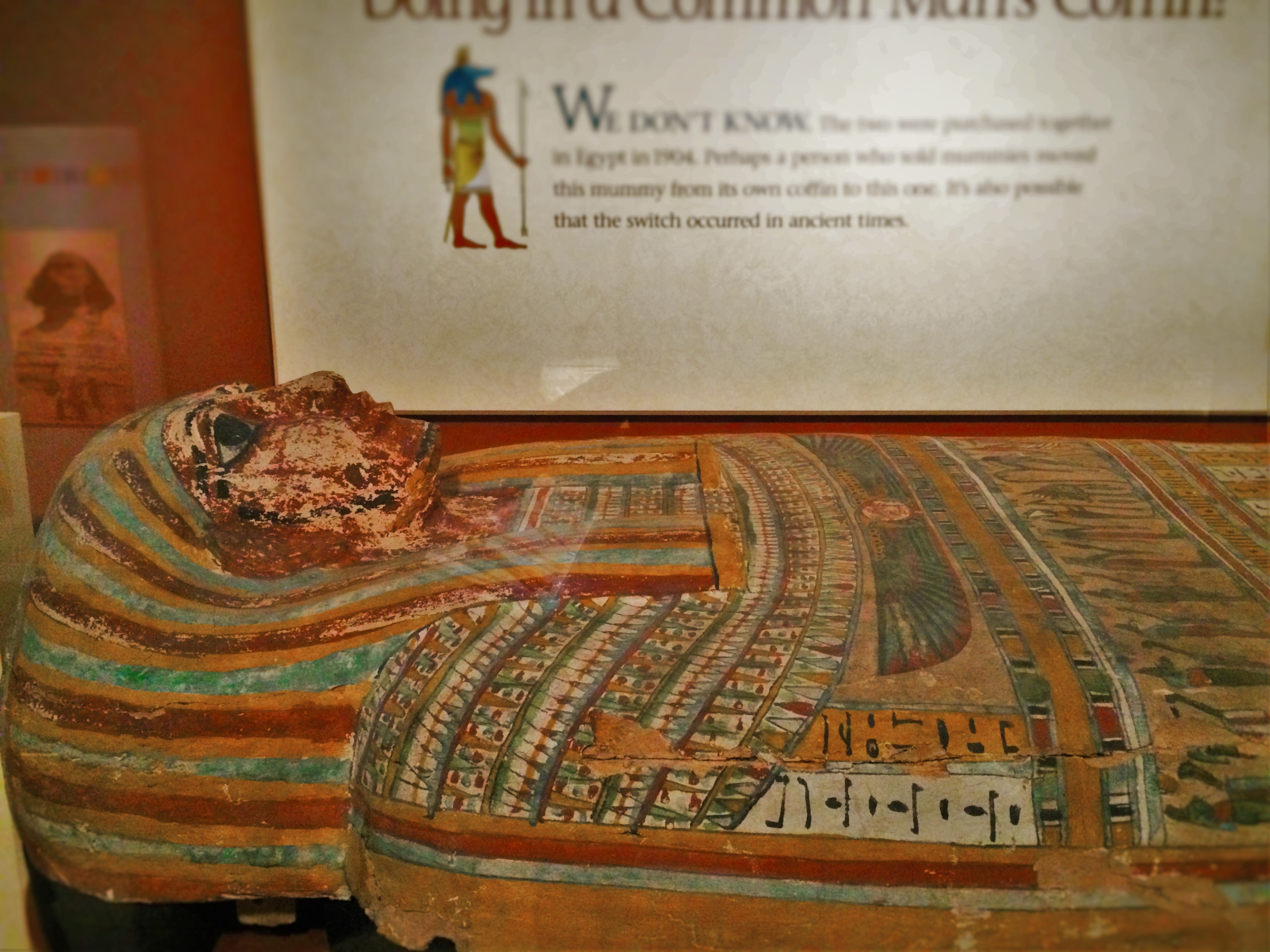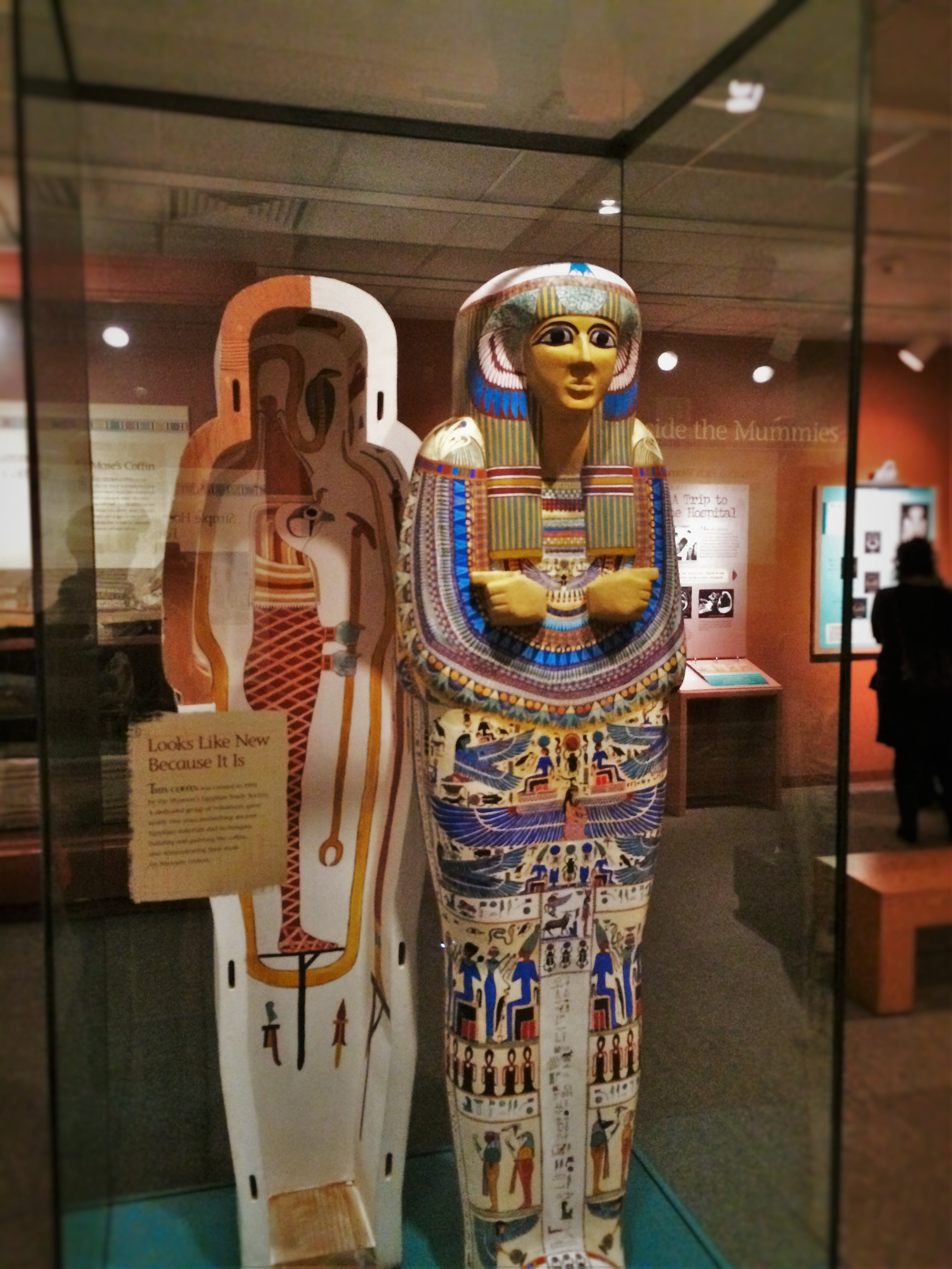 Ancient Mummy Case in Denver Museum of Science and Nature 2FYI:  four year olds don’t all love mummies.  We had to high-tail it out of this section, which made us sad, but it looked awesome.  From tiny model Egyptian cities to beautifully painted ancient sarcophagi, there was a lot to explore.  We only got to scrape the surface before somebody was begging us to leave the area because it creeped him out.  Noted for future museums…