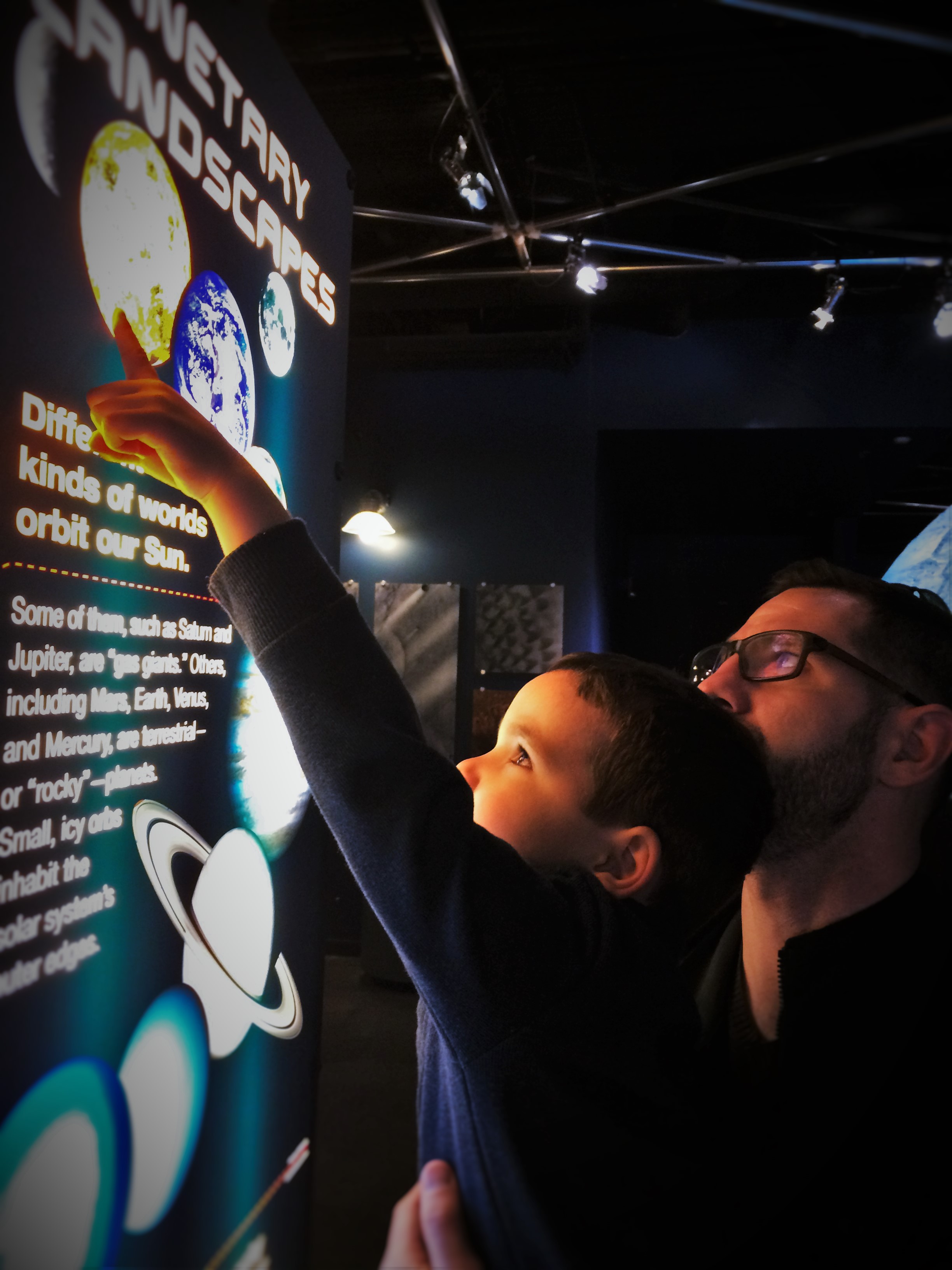The Space Odyssey exhibit was really cool!!  We hit it last and didn’t get to do everything, but seeing huge globes spining and changing was worth just the walk through.  We did get to learn a bit about the sun, about space-exploring land-rovers and about other planets’ moons, but we didn’t get to see everything.  We could’ve spent more than an hour in this small section because it was surprisingly hands-on.