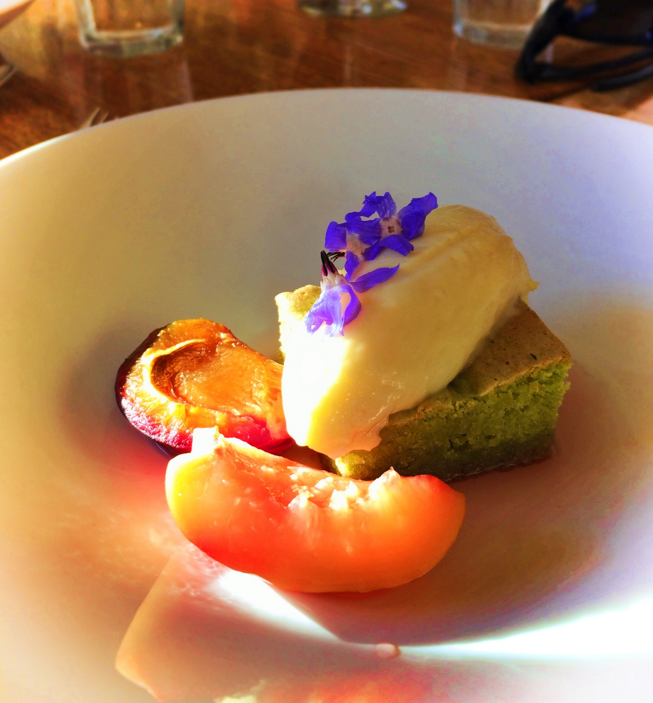 Wait! There was dessert! As we were wrapping up and trying to make it back to our seaplane on time our final course was brought to us: an olive oil matcha cake served with fruits from the orchard at the Inn at Ship Bay. Dense but perfectly balanced, it was the ideal way to end our destination dining experience, especially when paired with a mellow dessert wine.