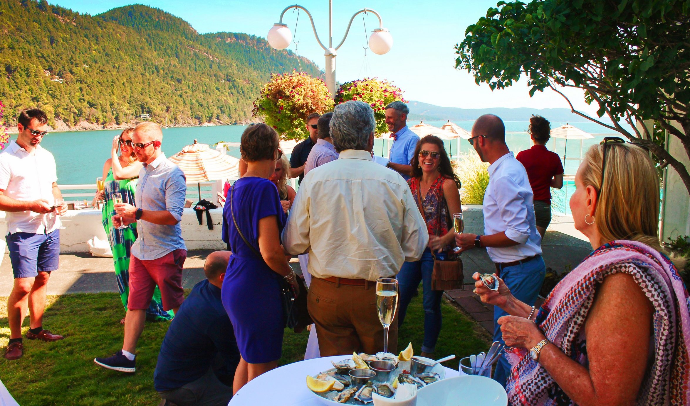 Since our Kenmore Air seaplane brought us into the harbor right by the Rosario Resort on Orcas Island, it was only fitting that this be our first stop on our destination dining afternoon. We were told to walk out of the marina and into the lobby of the beautiful hotel. Here we had champagne poured for us as we exited to the lawn.