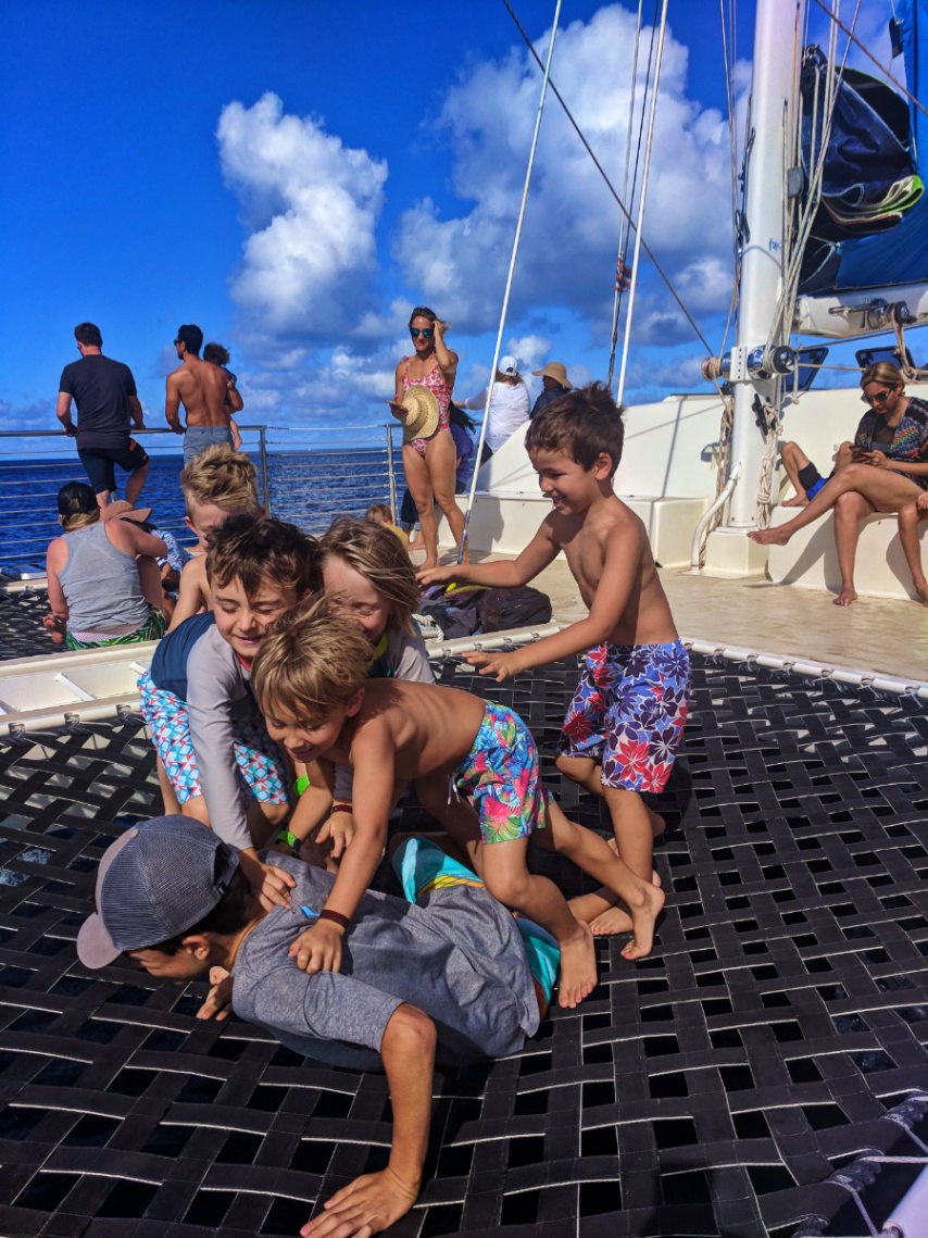 Catamaran adventure with the kids, including snorkeling