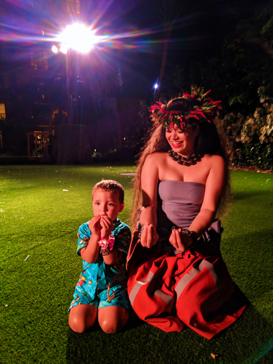 From the beginning of the Ka Wa’a Luau until the end, we had really wonderful, personal service from one of our favorite cast members, Janet. She was with us on the first night making sure that Elliott (our youngest) could enjoy everything despite being allergic to most foods, and she was with us at the Luau watching over him and making us all feel special. Of all of the awesome Disney cast we interacted with in our time at Aulani, we really want to thank Janet on the banquets team for being so kind and thoughtful.