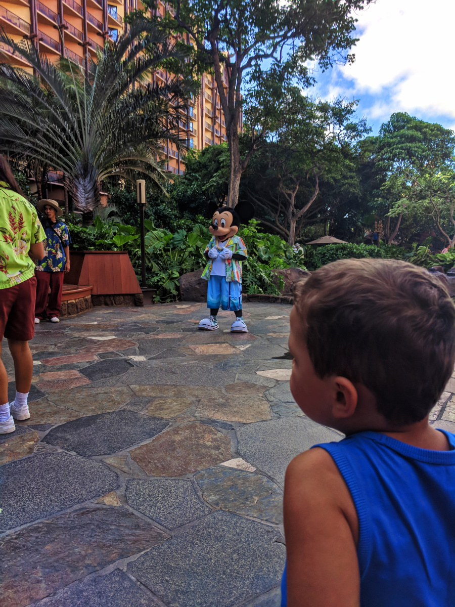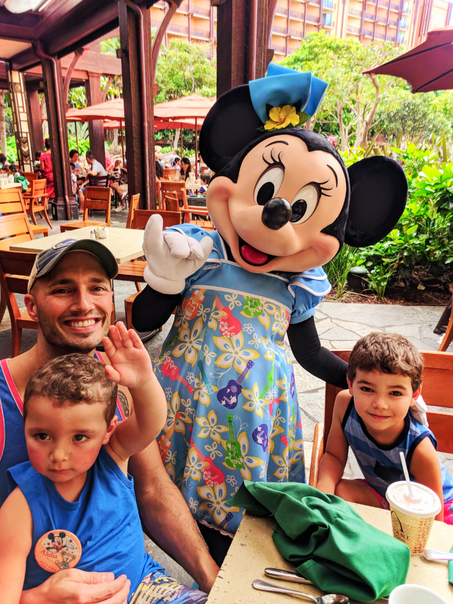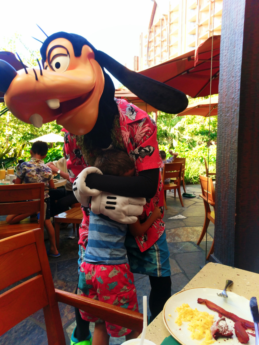 Something we skipped with the kids on our prior Disneyland trips has been character dining. If you’re unfamiliar, it’s where you go have a meal and all of your favorite character wander around and share breakfast or dinner with you. Today we had breakfast with Mickey, Minnie, Goofy and Auntie (the heart and soul of Aulani). The food was wonderful with lots of local dishes and everybody had a blast.