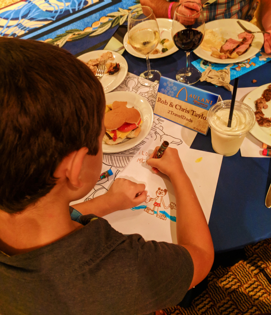 On our last two Disneyland trips we skipped doing any character dining with the kids. We got to do it at Disney’s Aulani! It was so fun! If you’re unfamiliar, character dining is where you go for a meal and then certain notable friends happen by your table. At Aulani these friends included everyone from Mickey and Minnie to Aunty (the Hawaiian spirit of ohana, or family).