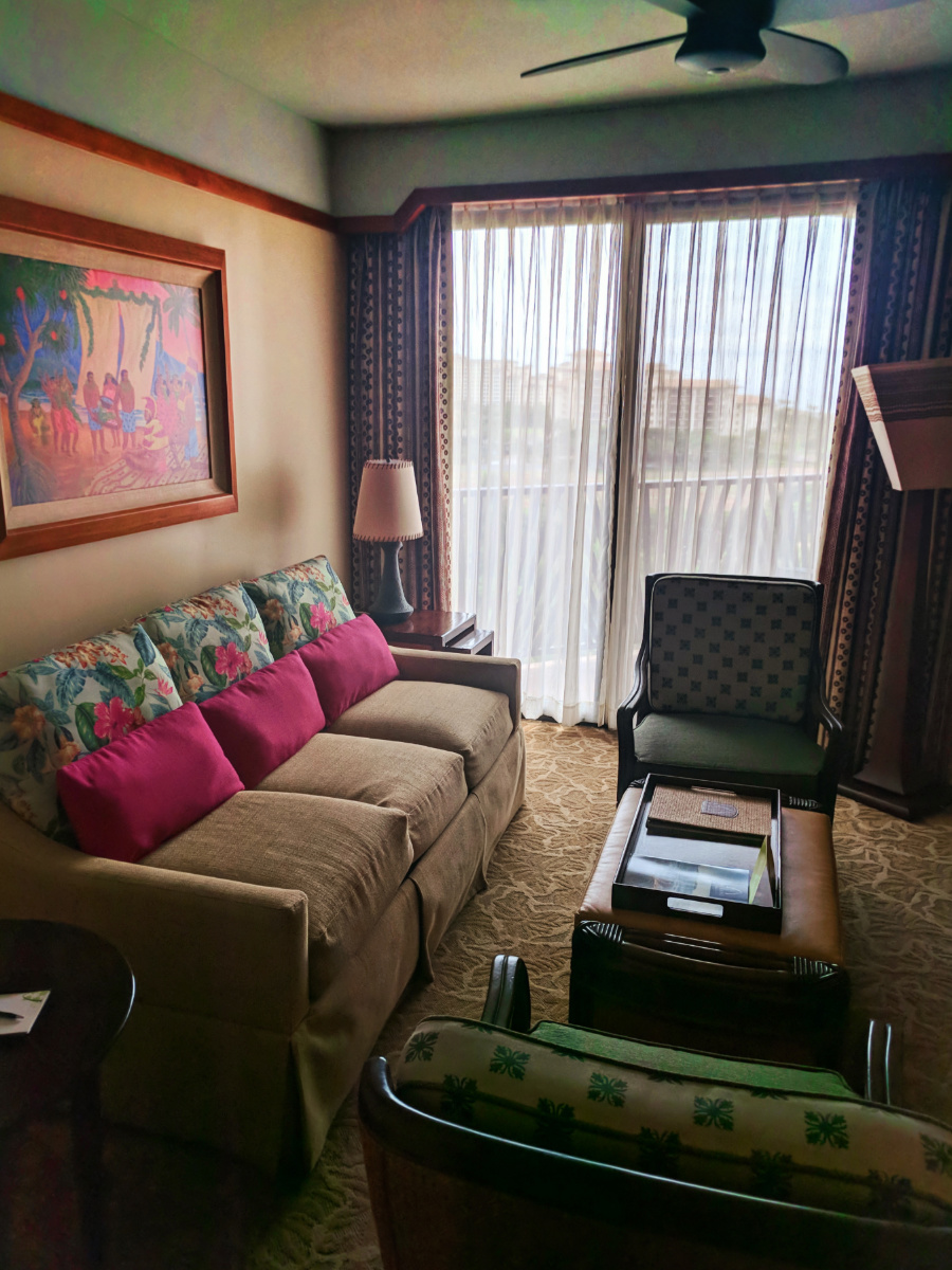 Traveling a lot as a family of four, we know how to make any sort of hotel or condo accommodations work for us. Our one bedroom villa (condo style unit) at Disney’s Aulani was ideal for us. We had a full kitchen, washer/dryer, living room (with the kids’ beds), master bedroom, two balconies, a jetted tub, rain shower and complete comfort.
