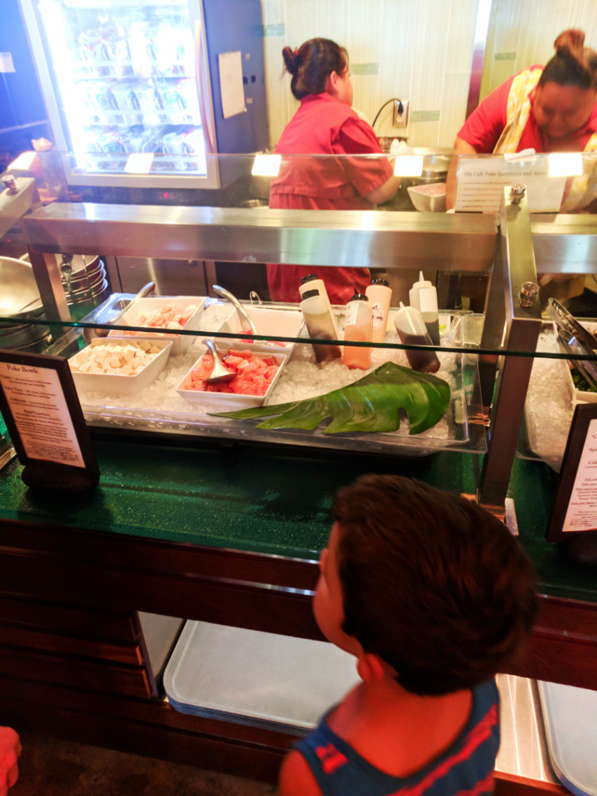 Tip: if you haven’t gotten to explore Oahu on your own yet, be sure to get a poke bowl at the Ulu Cafe. They have a great selection of quality ingredients to build poke bowls. Also, for dining on property at Aulani, the poke bowls at Ulu Cafe are for sure the best value for their cost.