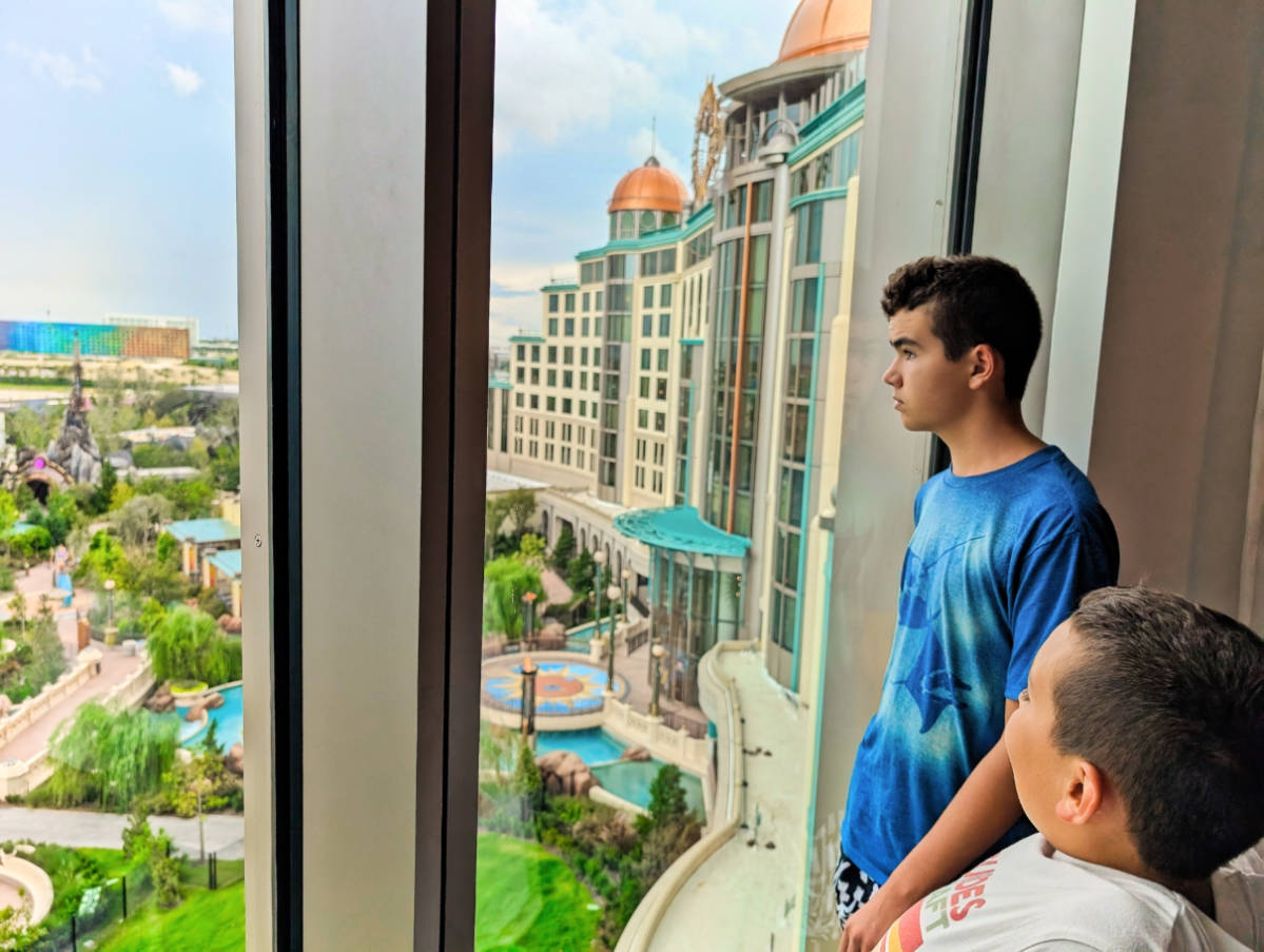 Taylor Family in Two Queen Room at Helios Grand Hotel at Epic Universe Universal Orlando Resort 1