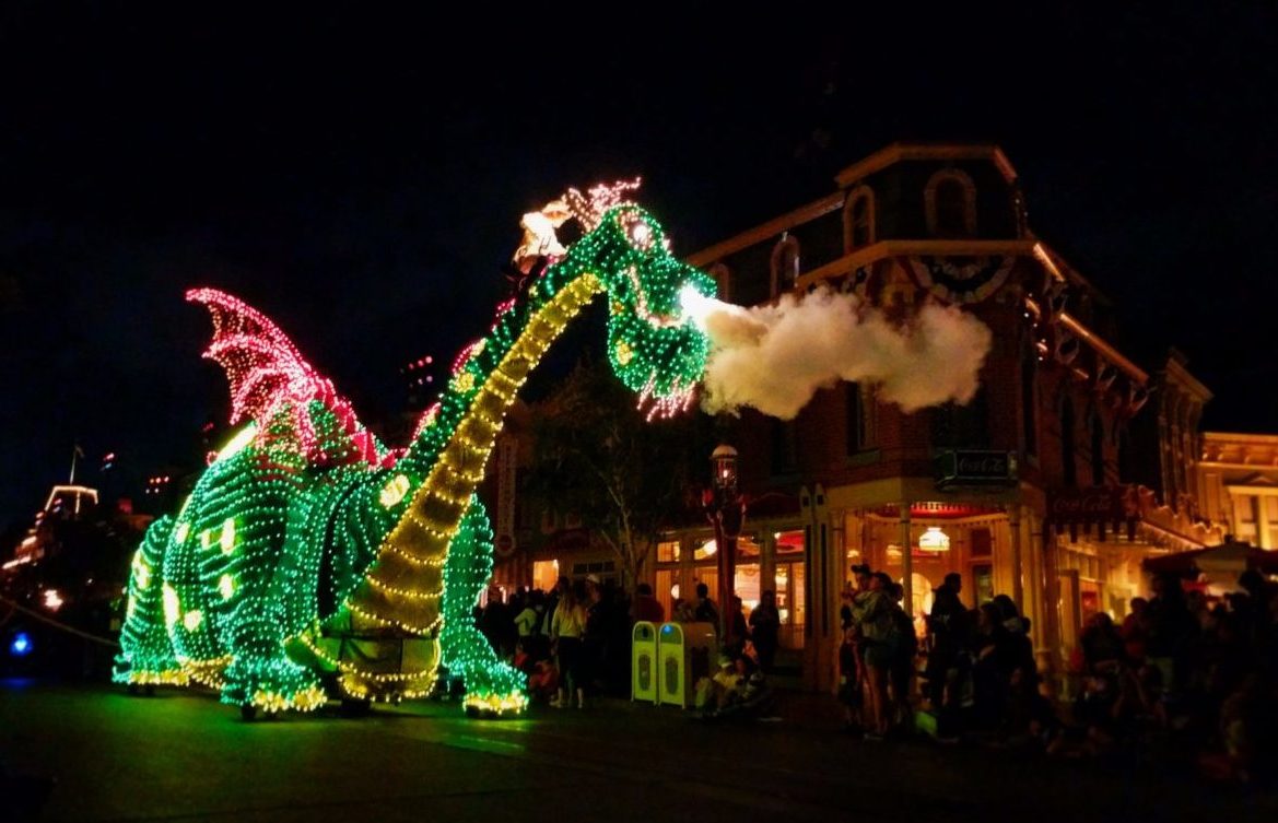 Petes Dragon float Main Street Electrical Parade Disneyland at night 1