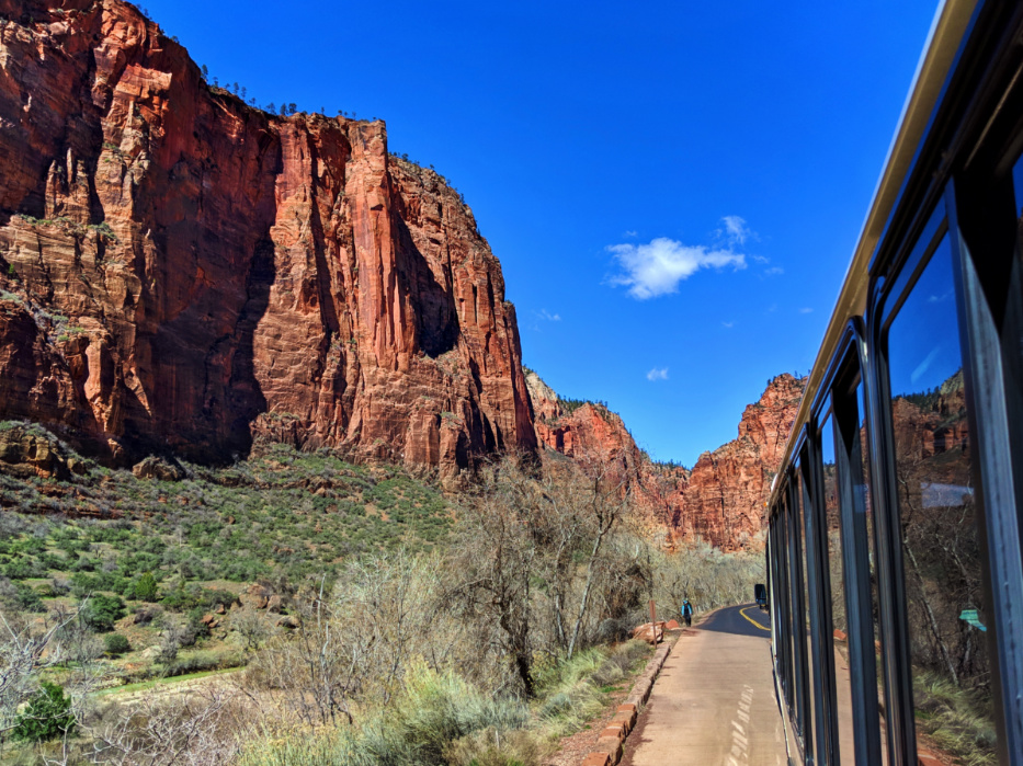 You probably have heard or read that you can only access Zion National Park via shuttle. That’s not completely true. Yes, Spring through Fall, the main Zion Canyon area is ONLY accessible via the provided shuttle, but in low season you can actually drive to certain areas. Check out our complete Zion Shuttle information here! And a big tip, if the shuttle is running, that’s a key sign that you should be taking it because the park is busy. Even if the main canyon road is open before high season, if there’s a shuttle running, take it.
