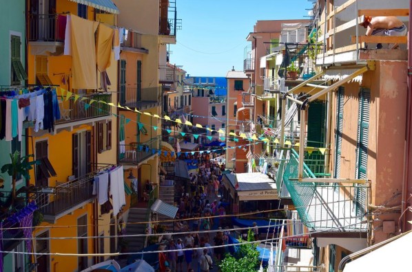 Cinque Terre translates to “five towns” in Italian. Guest what: there is a hiking trail that allows people to hike through those five colorful, picturesque seaside towns! While we were visiting, one of the trails between two of the towns was shut down due to a landslide. That was no issue for us as we took a ferry with stunning storybook views of the colorful towns, and continued on with our hike at the next town. We took a rest at a mountaintop restaurant a few hours into the hike where we had some drinks while enjoying the views from the beautiful outdoor seating area covered in hanging grapevines.