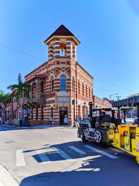 Historic Bank building and Conch Train Old Town Key West Florida Keys 2020 1