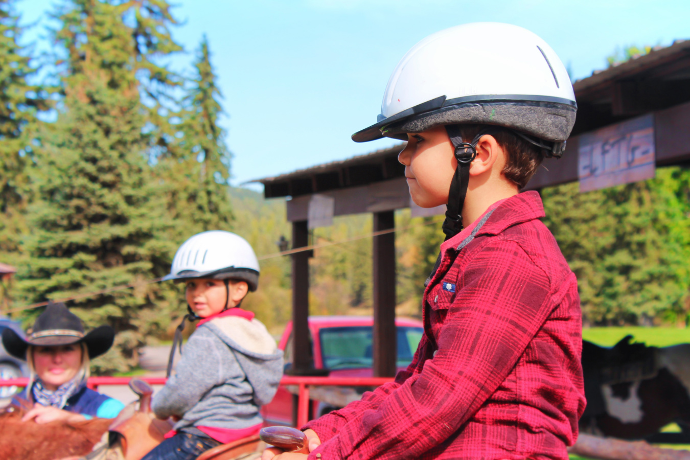Tip: If your kids haven’t been on horses before, a cow-poke experience like our little guys did, may be ideal. It’s very mellow and doesn’t go through any complex trails. Also the kids are led closely and are wearing appropriate helmets just in case. Check out our horseback experiences in Big Sky, Montana too!
