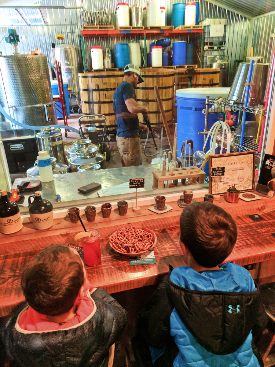 The kids loved watching the guys working with barrels, bubbling brew and pressure washing who knows what. For the kids they had mocktails and bottomless pretzels to round out their experience. For the adults there are whiskey and spirit flights, and they are delicious. It is great to try a variety of high quality spirits that are also truly unusual. Boutique distilleries may be our new fav thing. We left with a bottle of Bad Rock Rye and Huckleberry Gin.