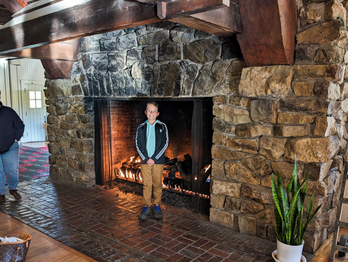 Taylor Family with fireplace at Glacier Park Lodge East Glacier Montana 1