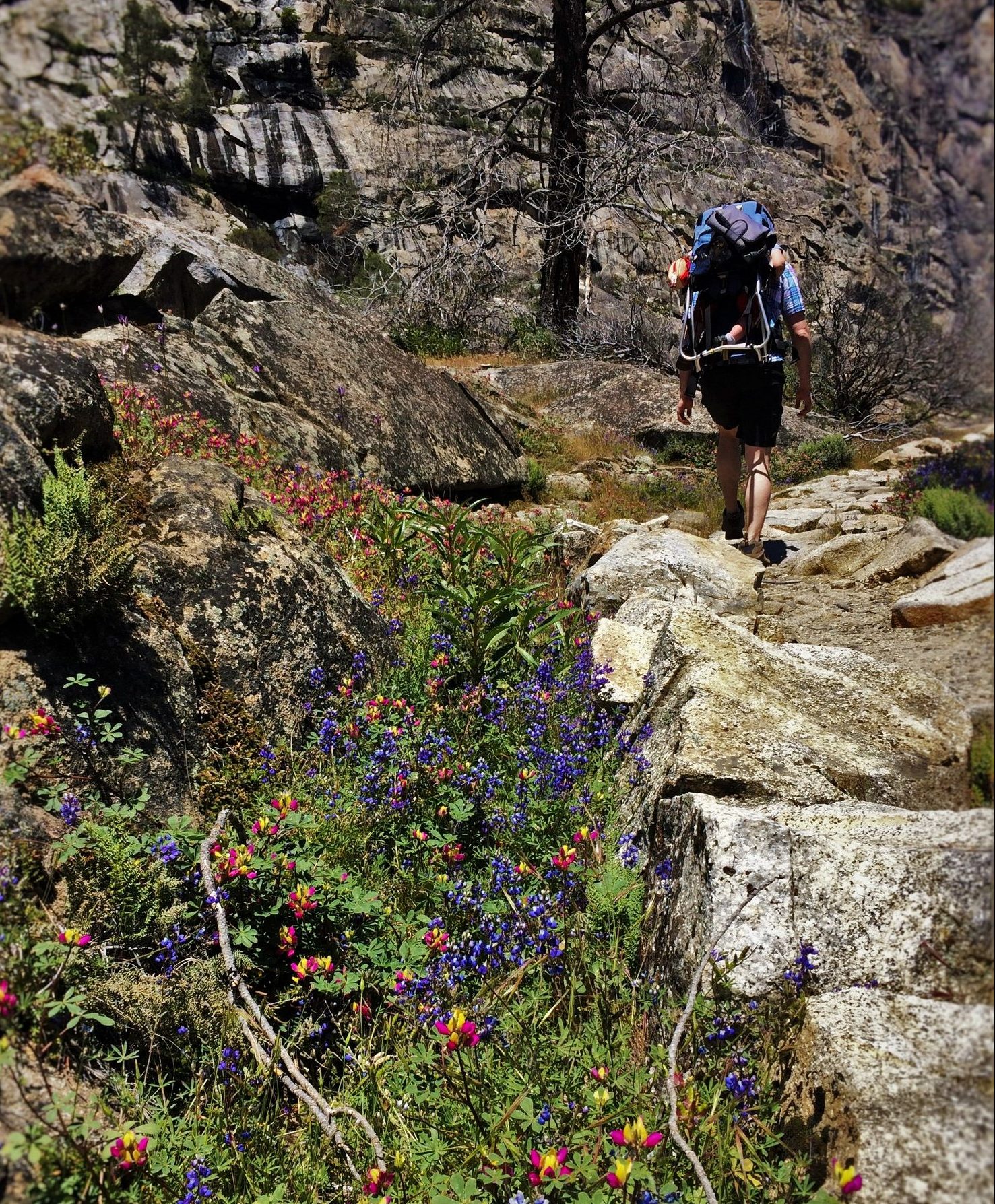 Hiking across this was fun because we got to jump from rock to rock, but then also there were a few opportunities to splash in the water a bit. On a hot day like we were experiencing, the meadow streams of Hetchy Hetchy were a welcome sight. The kids loved this spot to take a rest… which led to wet butts.