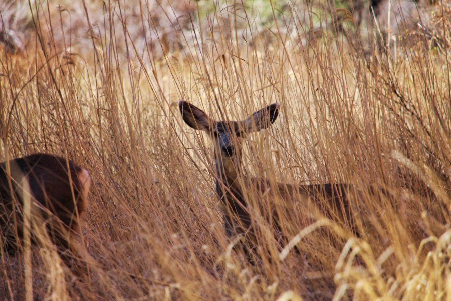 The hiking trail here is extremely level and follows the path of the river. This trail is NOT stroller or wheelchair accessible, but on foot it is fairly easy. Highlights of the Big Bend trail (actually an extension of the Paras trail) are the sheer sandstone cliffs above, seasonal waterfalls pouring into the river, and a seemingly resident herd of black tail deer.