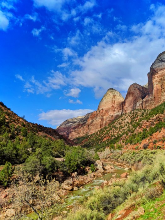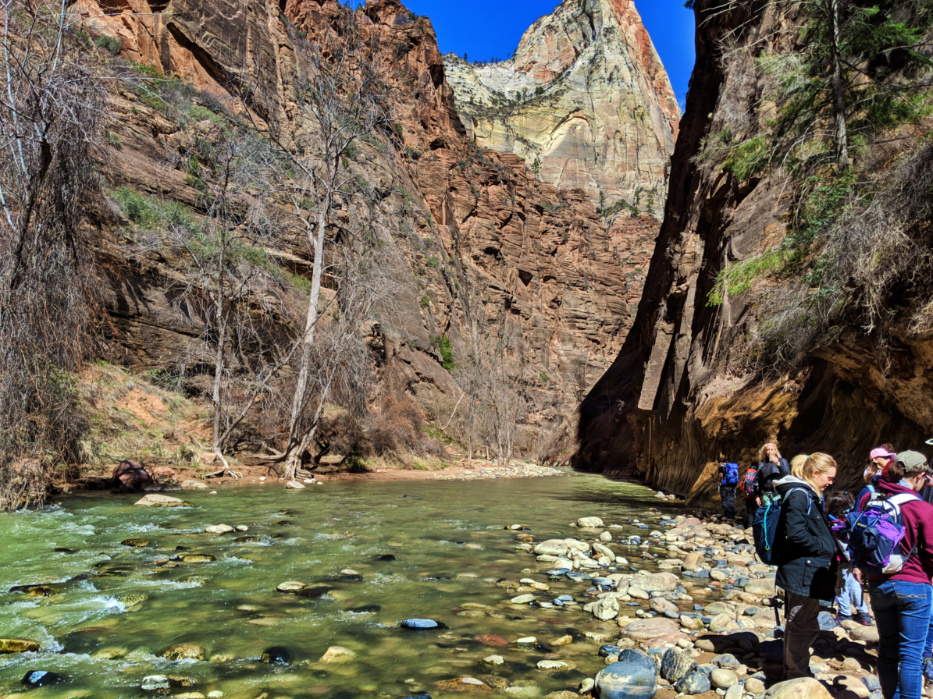 This is primarily a shuttle stop in the Zion Canyon but is a great option for kid friendly hiking. You can access the trail head here either by hiking from Weeping Wall or by getting off the Zion Shuttle and walking down the hill. Big Bend is an interesting area as you see the Virgin River cut even more through the canyon and take a big turn, or bend.