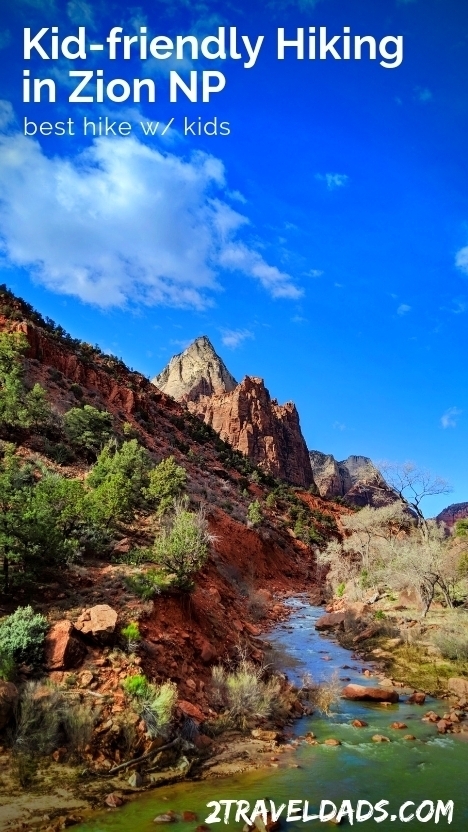 The Pa’rus trail is the very first trail you’ll encounter at the main entrance to Zion National Park. Fitting that it’s our first recommendation for kid friendly hiking in Zion. The Pa’rus trail begins at the Visitor Center and goes as far as Canyon Junction. It’s a pretty mellow hike and is even wheelchair accessible for the 3.5 miles along the river. This is a busy trail though, as it’s one of the few that dogs and bikes are allowed on, but it’s beautiful and if you don’t have a ton of time but want to experience a taste of Zion, this is ideal.