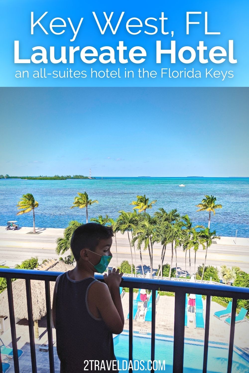 Review of the Laureate Key West, an all-suites hotel. In a great location that’s NOT downtown, the Laureate is perfect for families with plenty of space and hotel amenities, directly across from the turquoise waters of the Florida Keys.