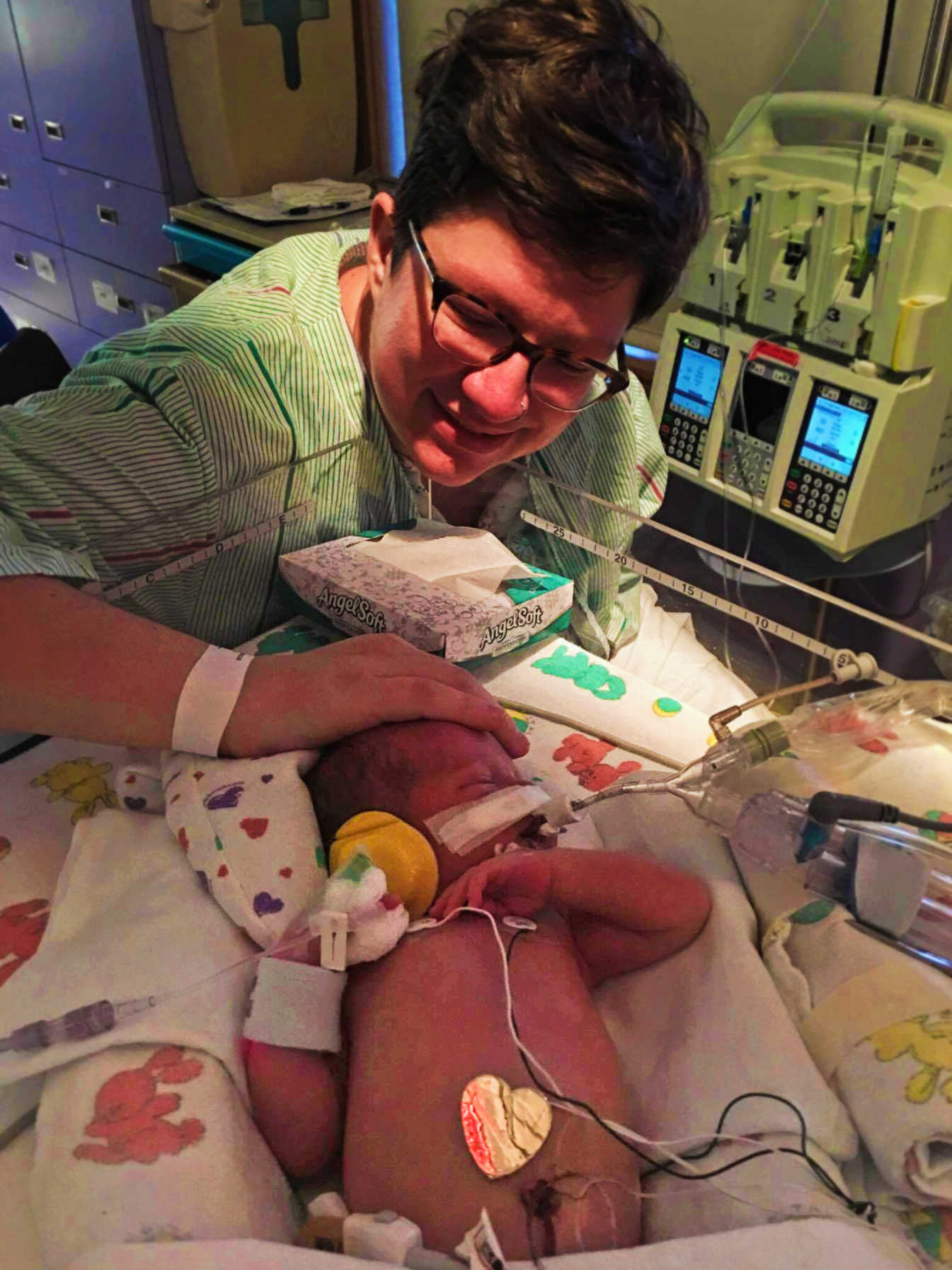 Hugs from volunteers, nurses and parents in the NICU help both with ensuring that newborns have the human contact and reassurance that there’s somebody there for them, but also help physiologically to encourage a normal heartbeat and proper growth. Hugs are important.