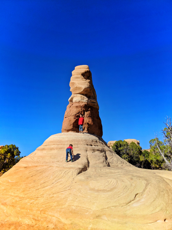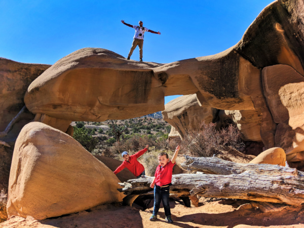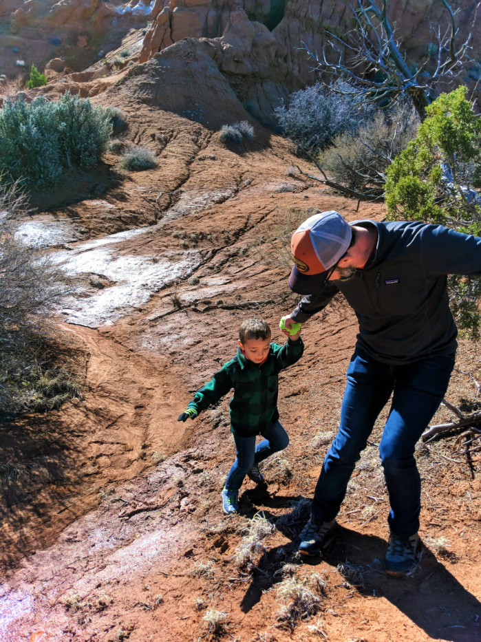 You’ll want to start any hiking early in the day to beat the heat, but on a breezy day, you’ll find the funnel of the valley to keep it at a functional temperature. Our top recommendation for a family friendly hike in Kodachrome Basin is the Shakespeare Arch. The terrain isn’t too crazy, but it’s windy enough that every turn has a new view. The arch itself is pretty cool, but it’s not epic in the way that Arches NP is epic. Fun for kids, totally doable in less than two hours.