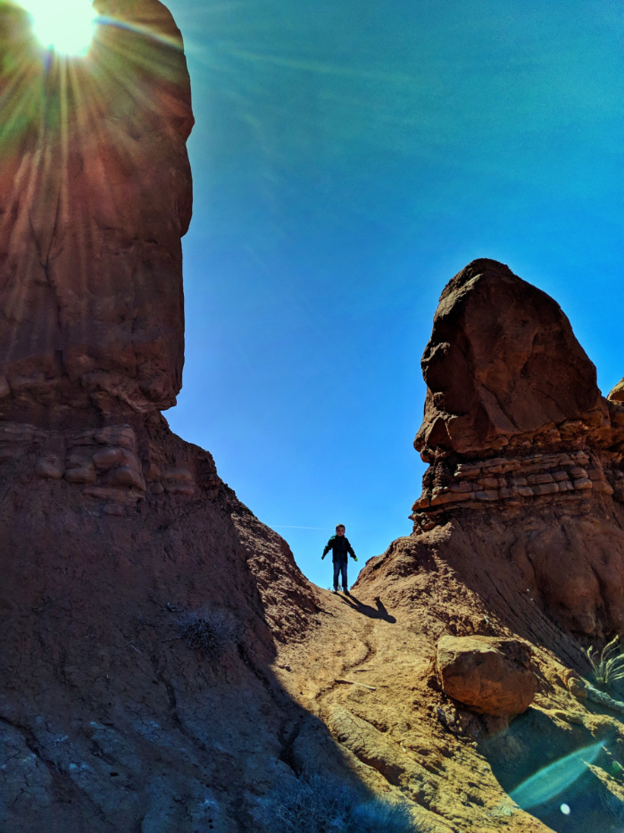 Also, even though there are lots of kid-friendly formations and areas to explore, there are also a lot of drop-offs and steep slopes. If you’re visiting Devil’s Garden with kids, have fun, but be safe and aware. Safety is an important part of any Utah road trip.
