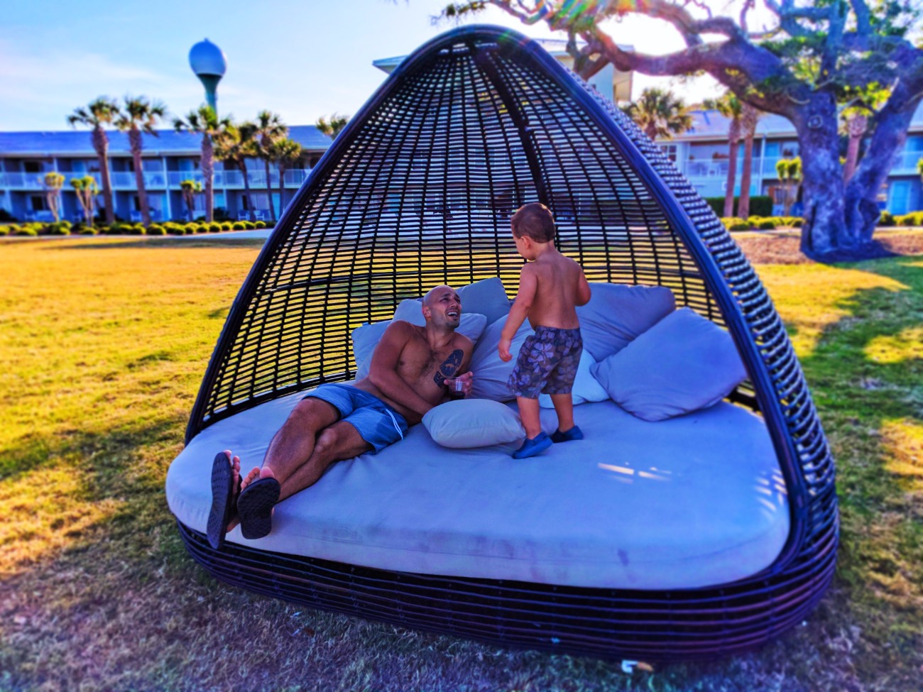 there are lots of major hotel chains with properties here on the Island or in the Golden Isles in general. We stayed at the Holiday Inn Resort Jekyll Island and it was great. It was our first time staying in this particular brand and we were genuinely impressed. We had a deluxe Oceanfront room which had two beds and plenty of space for the kids to run around without causing too much ruckus or mess. We also had our own patio and access directly out to the pool and the beach.