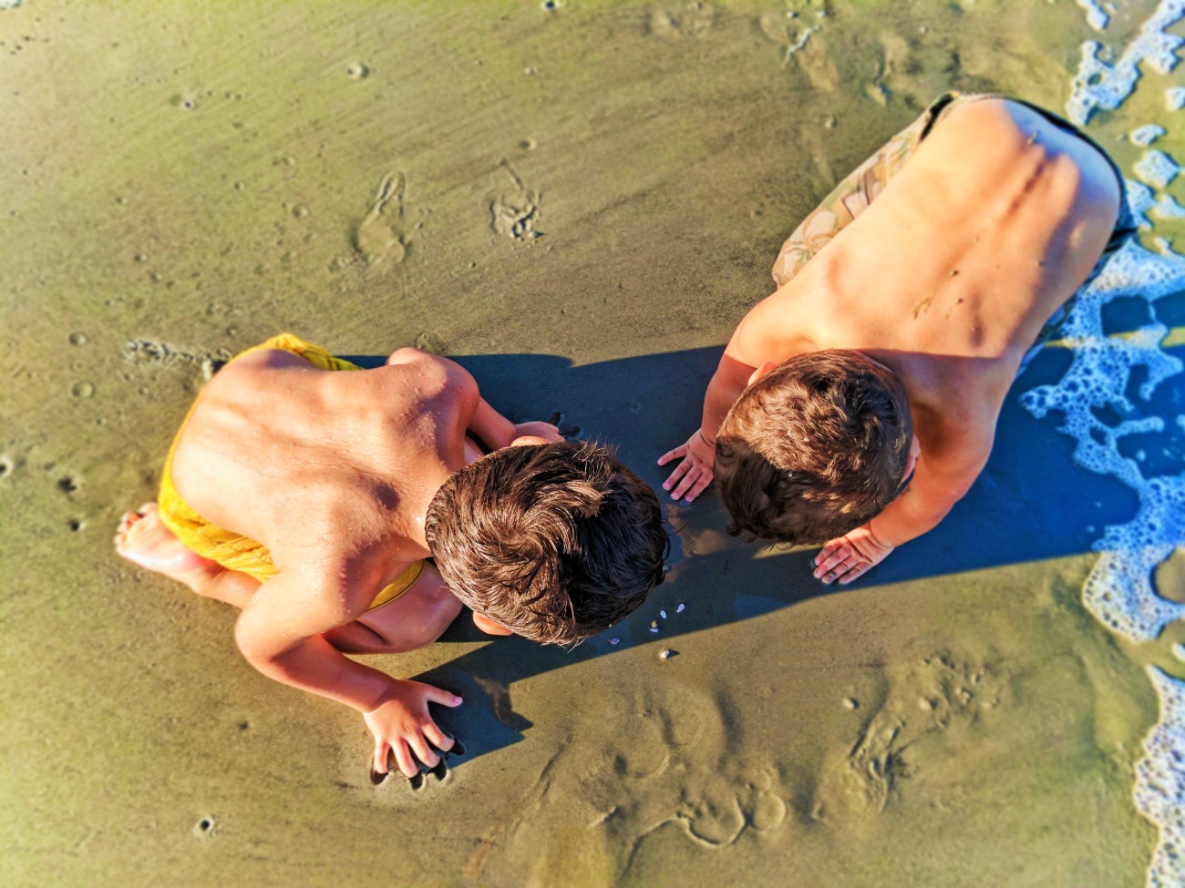 Driftwood Beach is quite a site with some of the most amazing salt and sun bleached pieces we’ve ever seen. There are also very strange tidepools here that are just in the sand and have the same life you would expect to see in rocky tide pools. We found a few of them without anything living in them and we use those as splashing areas for the kids.