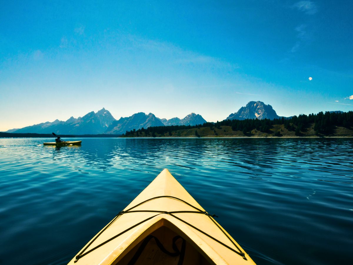 Kayaking on Jackson Lake in Grand Teton National Park Wyoming