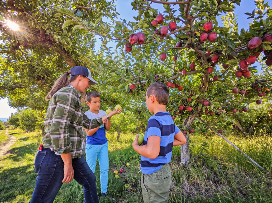 Taylor Family Picking Apples in Orchard at Chelan Valley Farms Manson Lake Chelan Washington 4