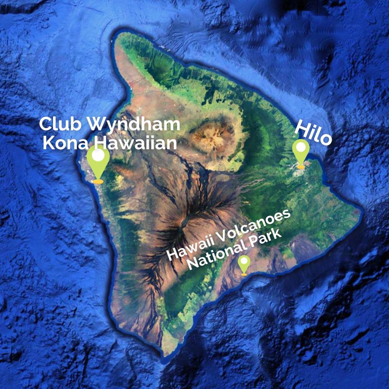 Map of Big Island Hawaii with Wyndham Kona Hawaiian