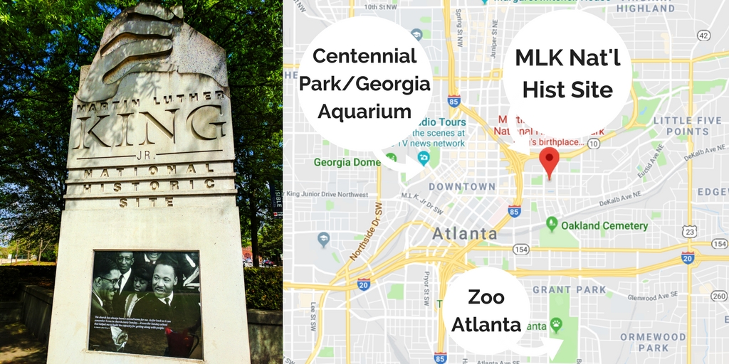 Just east of downtown Atlanta, the MLK National Historic Site is easily accessible if you’re spending any time in the city. There is a trolley that goes between the historic neighborhood and Centennial Park, there is ample parking at the King Center and National Park site itself, there’s parking around the corner… Atlanta also has an easily navigable bus system, so if you’re heading to the Atlanta Zoo or the Botanical Gardens, you can plot it all out together and make a full, interesting day in downtown Atlanta.
