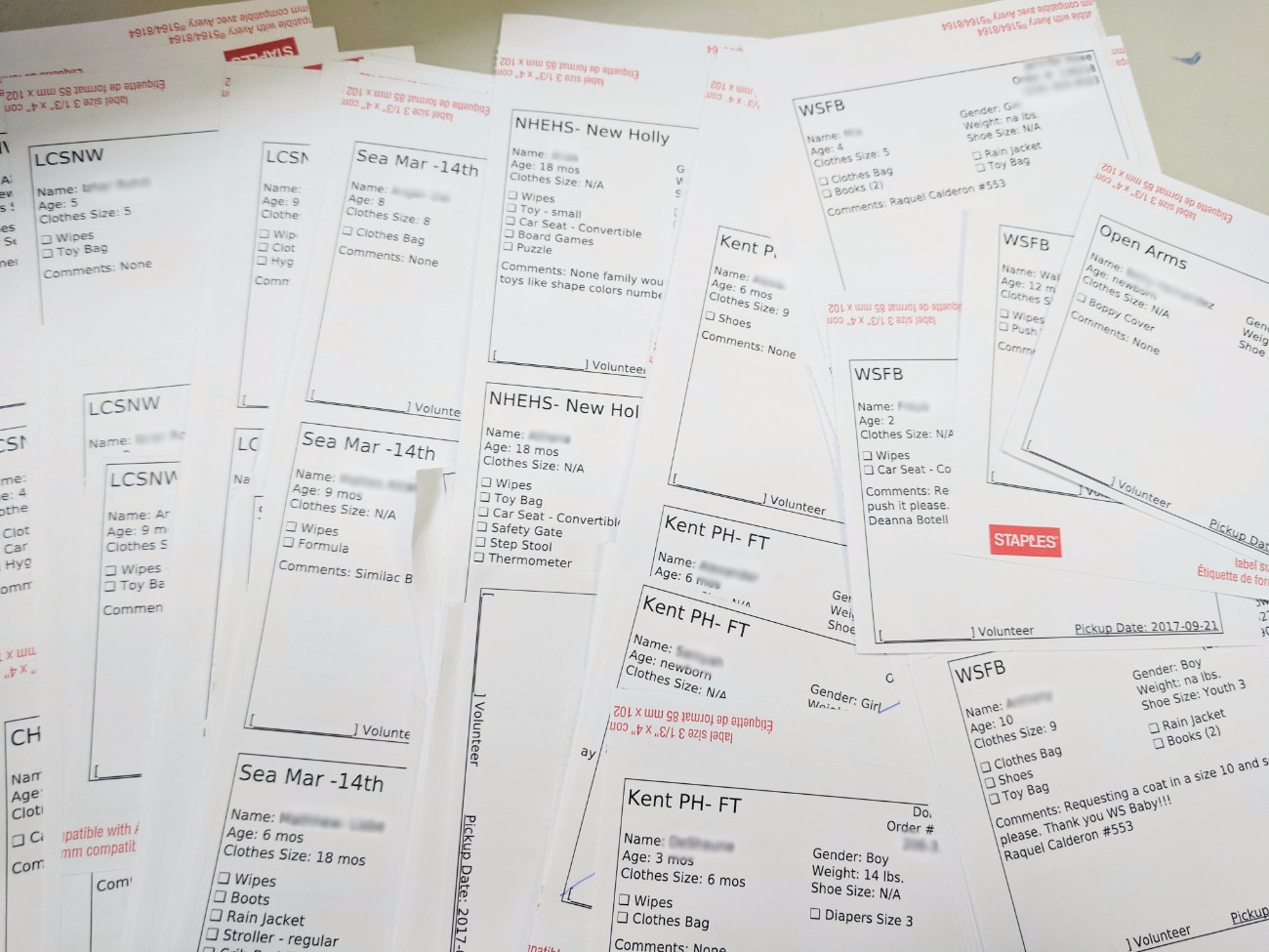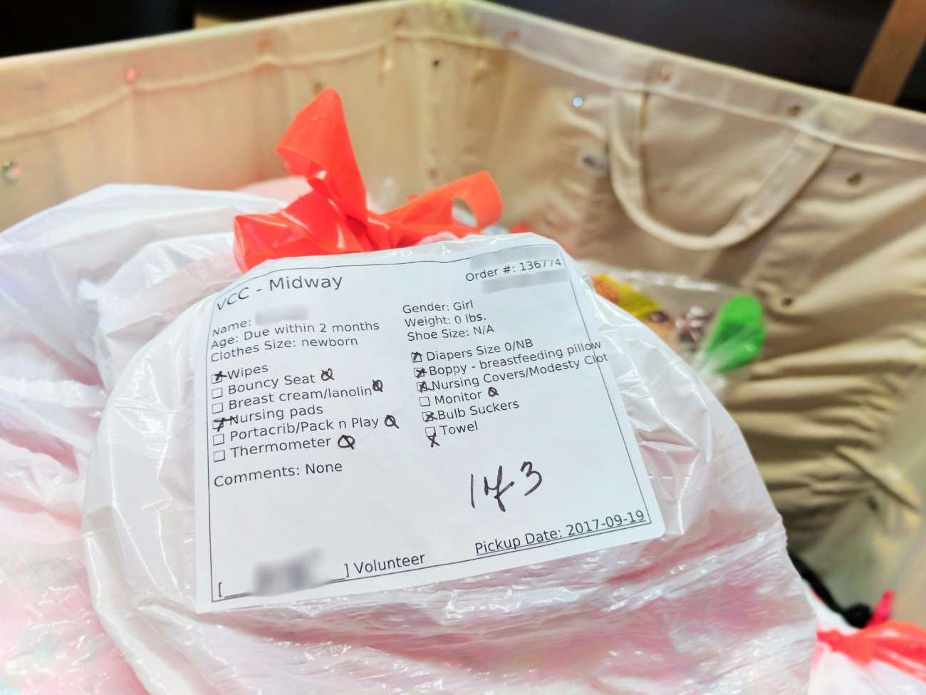 A moment that really stuck with me as we were looking at different orders was this: some orders were for families with two or three kids needing a variety of children’s clothing sizes, a few orders were very simple, and then we saw a request for a refugee family that has not even arrived yet but whose family has proactively asked for support. They are supposed to arrive in the next two months and already, WestSide Baby is working with somebody to ensure that family has the essential goods for a safe start when they arrive in the Seattle area.
