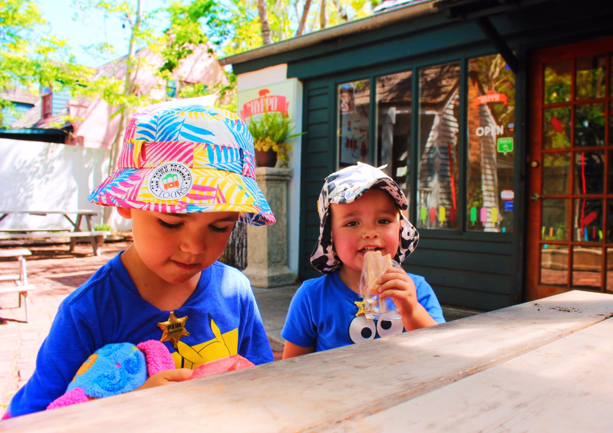 Continuing on, we hopped on board and headed for the old City Gates. A visit to Castillo de San Marcos National Monument and a walk with Hyppo popsicles down St George St and we were ready to hop back on. We caught the Old Town Trolley Tour right by Flagler College and heard all about the rest of the town. We ended at the Fountain of Youth Archaeological Park where Oliver begged us not to drink the water. His argument: “But I love you the way you are.” He’s a keeper.