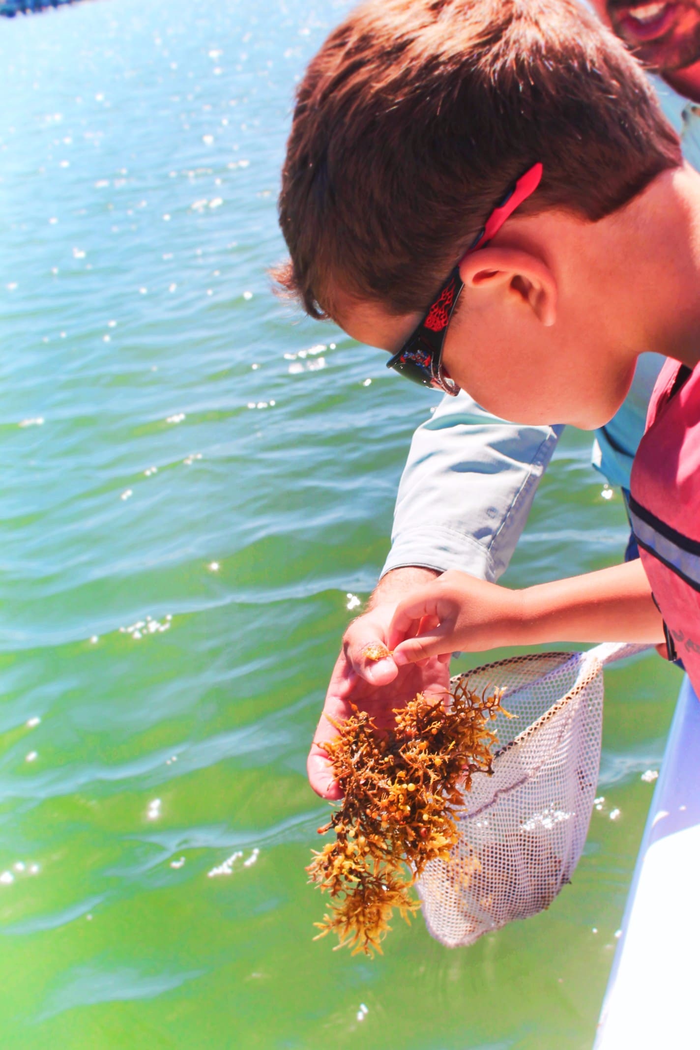 Moving south we were treated to an exceptional moment: we came across a small congress of manatees feeding…while a family of dolphins went crazy catching fish and throwing them into the air just beyond. It was amazing! The kids loved every minute of it. Our naturalist, Zach, also pulled out an underwater microphone so we could listen to the dolphins. Seriously awesome eco-tour.