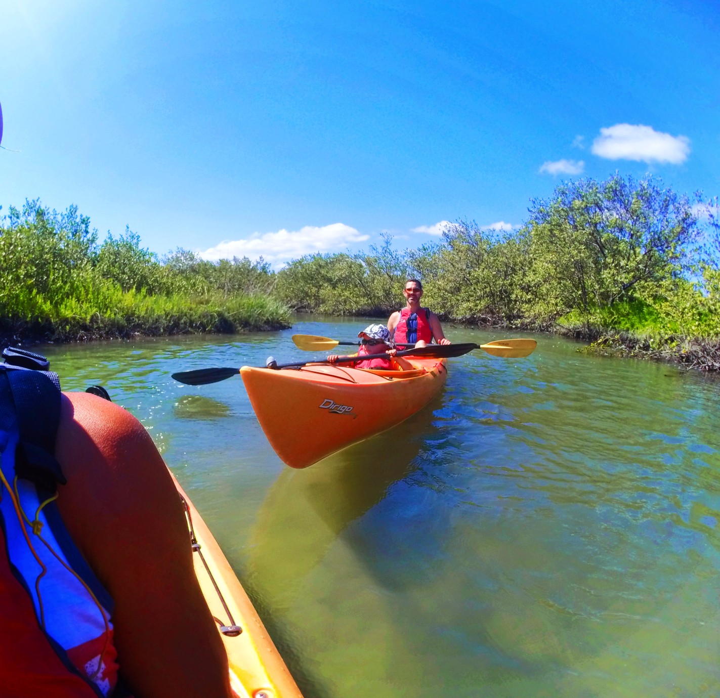 As we wrapped up our kayaking in the GTM Reserve we got to observe a couple of dolphins fishing. They were getting playful and putting on quite the show. We were all careful to not paddle towards them, but the dolphins swam all around us. Following this, Oliver, our oldest, told us that he wants to be a naturalist someday. I hope that happens. 🙂