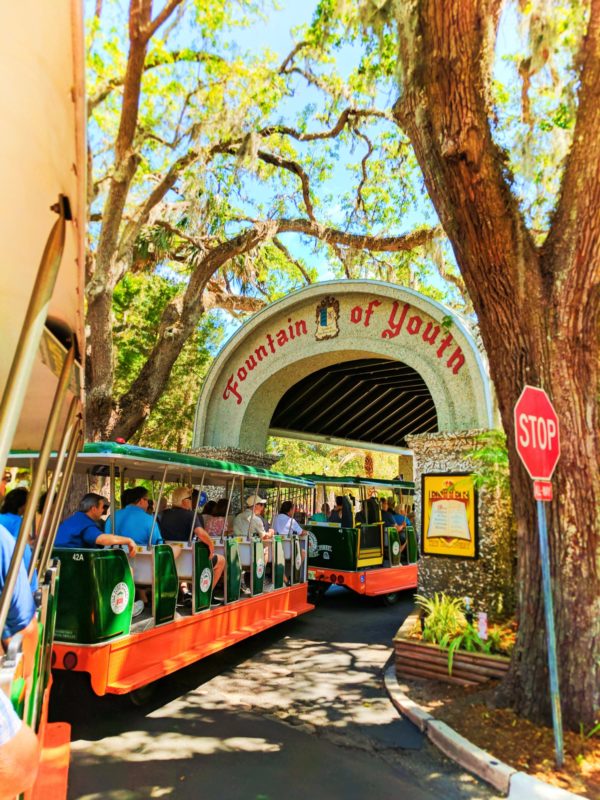 Continuing on, we hopped on board and headed for the old City Gates. A visit to Castillo de San Marcos National Monument and a walk with Hyppo popsicles down St George St and we were ready to hop back on. We caught the Old Town Trolley Tour right by Flagler College and heard all about the rest of the town. We ended at the Fountain of Youth Archaeological Park where Oliver begged us not to drink the water. His argument: “But I love you the way you are.” He’s a keeper.