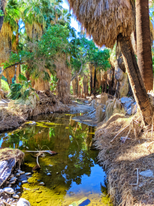 We’ve long been big fans of hiking at the Indian Canyons just outside of downtown Palm Springs. It’s the reason Palm Springs has its name. Truly, the palm oases surrounding the city are out of this world and magical. Picture it: desert all around you and then in the canyon below there are streams and waterfalls and palm jungles. Until you visit, it’s difficult to understand how special this place it.