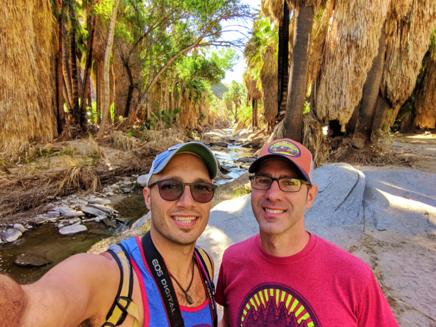 We’ve long been big fans of hiking at the Indian Canyons just outside of downtown Palm Springs. It’s the reason Palm Springs has its name. Truly, the palm oases surrounding the city are out of this world and magical. Picture it: desert all around you and then in the canyon below there are streams and waterfalls and palm jungles. Until you visit, it’s difficult to understand how special this place it.