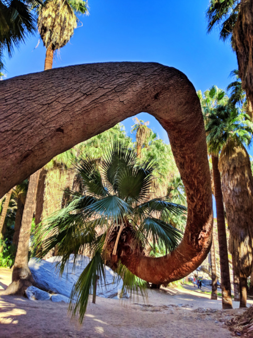 We’ve long been big fans of hiking at the Indian Canyons just outside of downtown Palm Springs. It’s the reason Palm Springs has its name. Truly, the palm oases surrounding the city are out of this world and magical. Picture it: desert all around you and then in the canyon below there are streams and waterfalls and palm jungles. Until you visit, it’s difficult to understand how special this place it.