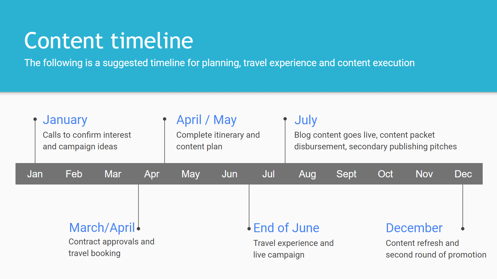 This is a very thorough email outline of a campaign. It leaves very little to the imagination and sets up very specific deliverables and what’s to be expected from the brand end. You don’t need to have all of this figured out when you send a formal pitch, but in my experience with both travel brands and destinations, making the campaign planning and launch as easy for them as possible makes the pitching process go a lot more smooth.