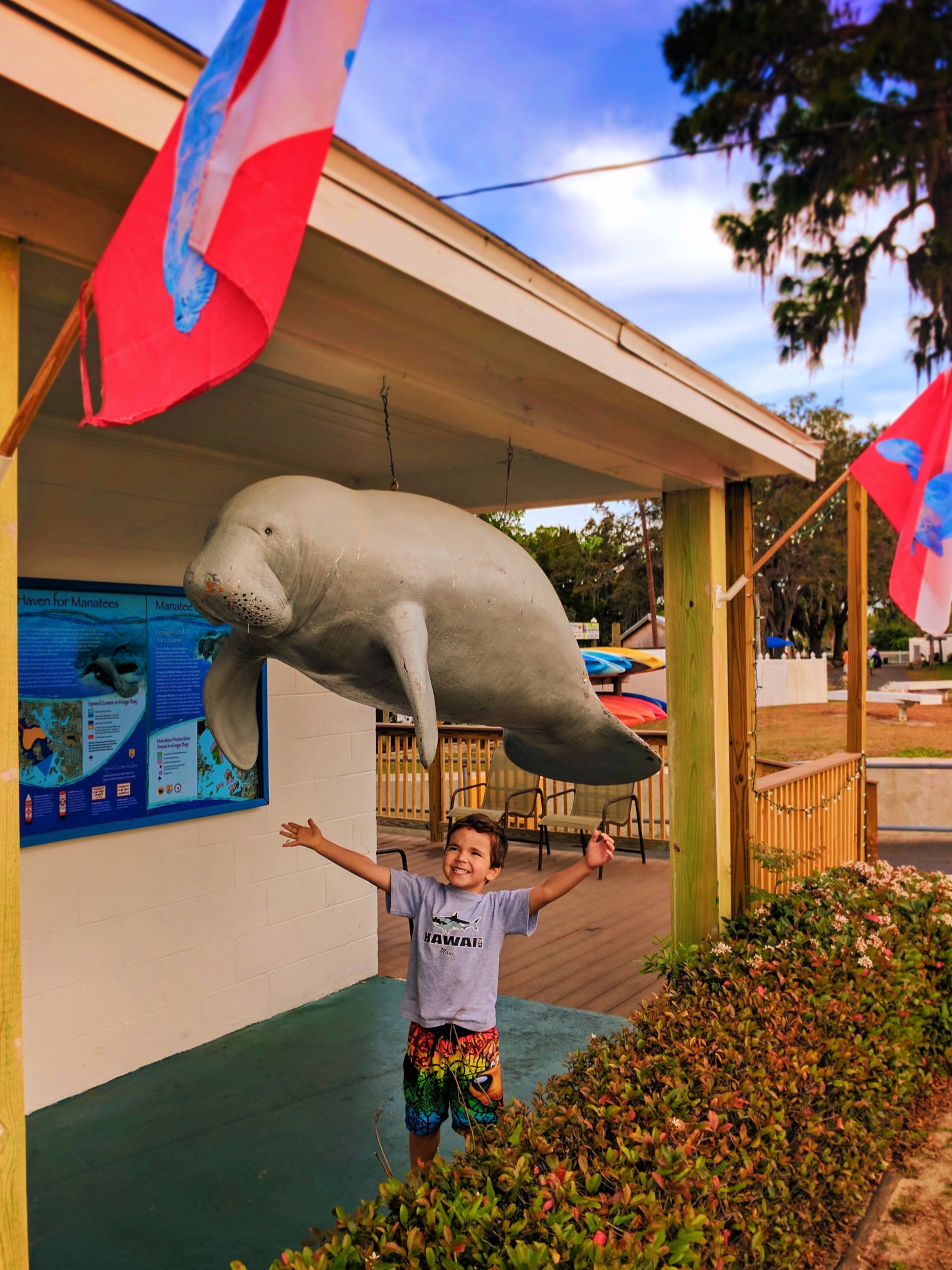 The Plantation on Crystal River is located directly on Crystal River and its canals. A sprawling property, half of the rooms look out to the water and the other half look to the towering southern oaks dripping with Spanish moss. Really, the atmosphere is dreamy. The kids loved it!